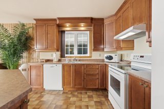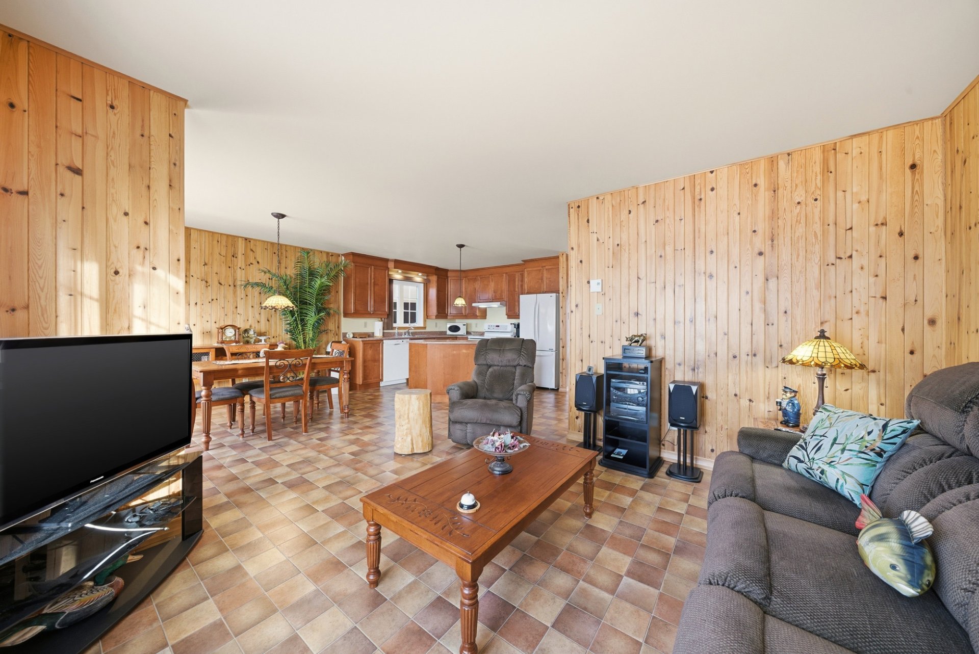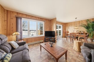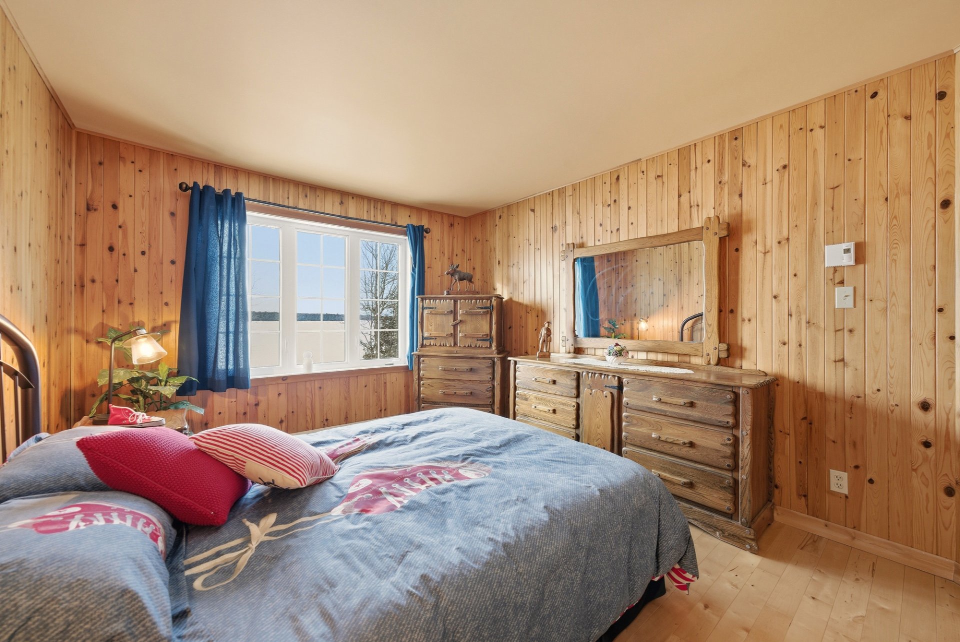 Dès l'entrée, vous serez charmé par l'ambiance chaleureuse créée par les murs de bois, le concept à aire ouverte et l'abondante luminosité naturelle. La cuisine conviviale, dotée d'un îlot central et de nombreux espaces de rangement, s'ouvre harmonieusement sur la salle à manger, laquelle profite d'une vue imprenable sur le lac grâce à la porte-patio. Le salon, spacieux et lumineux, invite à la détente dans un décor à couper le souffle.