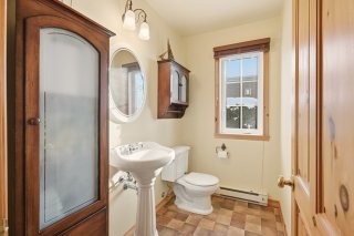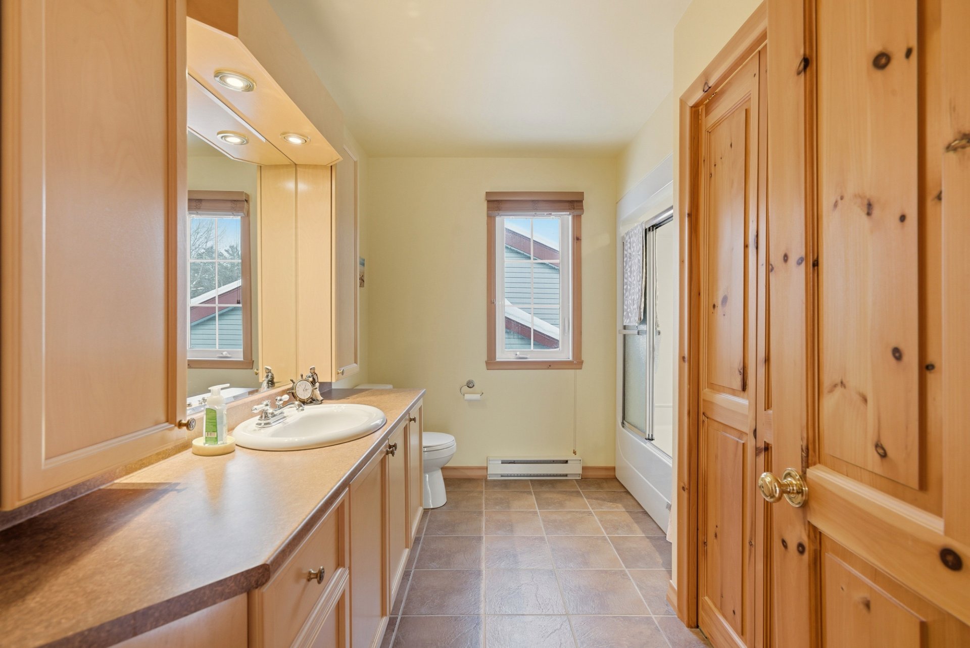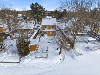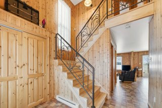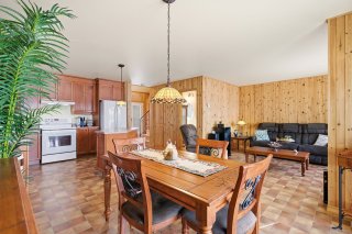 La propriété propose trois chambres à coucher, une salle de bain complète ainsi qu'une salle d'eau, offrant un aménagement parfaitement adapté à la vie familiale ou à l'accueil de convives. Chaque espace a été soigneusement entretenu, témoignant d'un souci constant du détail et d'un entretien irréprochable. Vendu clé en main avec plusieurs inclusions, ce chalet se distingue par sa qualité et son confort sans compromis.