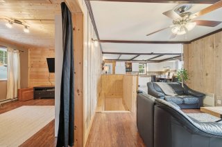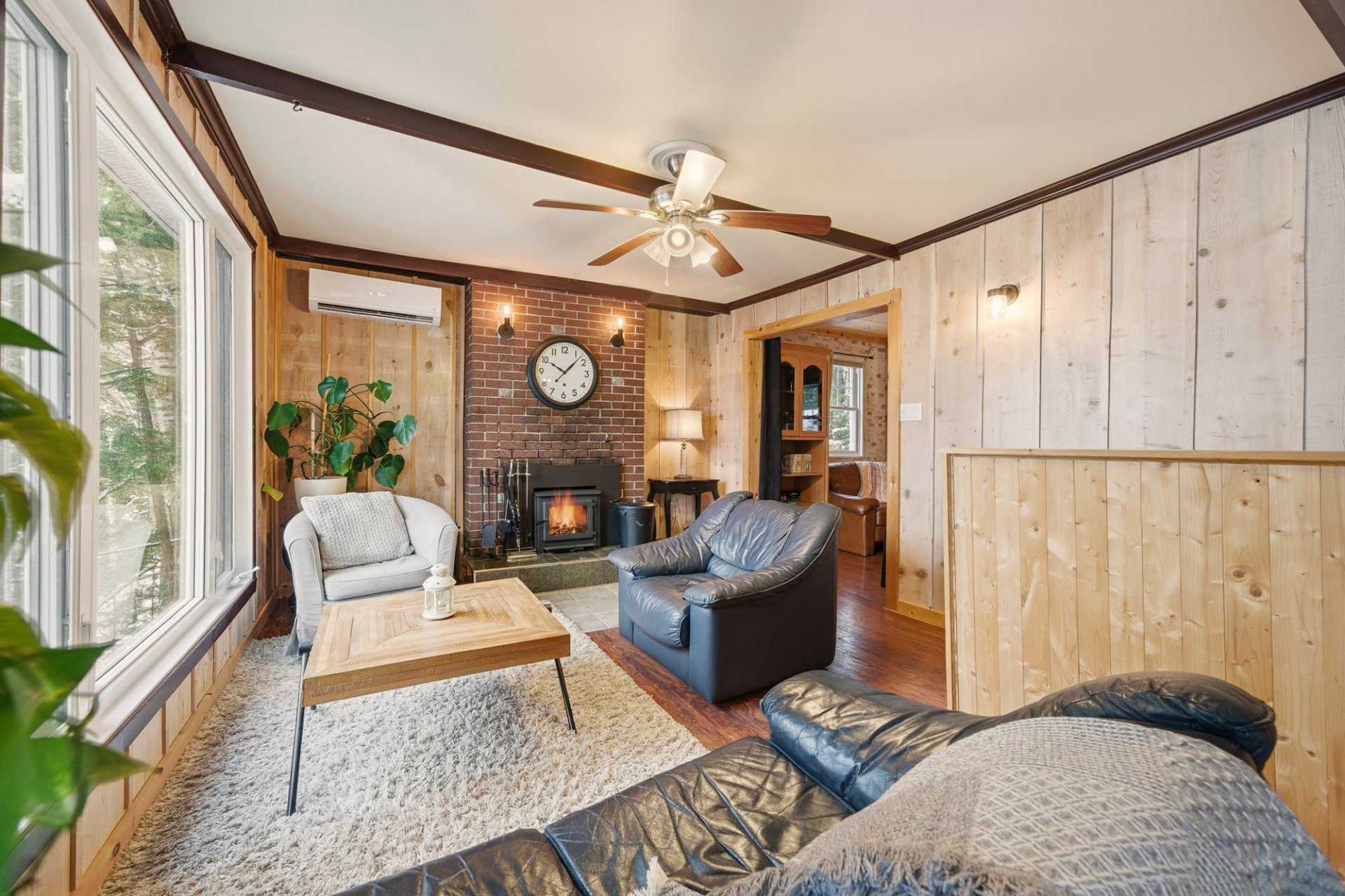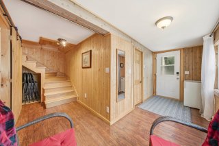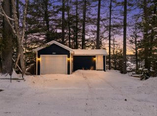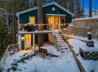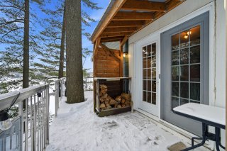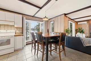 L'intérieur charme par son concept à aire ouverte baigné de lumière, sublimé par des murs de bois au style rustique et chaleureux. La cuisine et la salle à manger profitent d'une vue imprenable sur l'eau, tandis que le salon, agrémenté d'un foyer au bois, crée une ambiance conviviale et accueillante. Un second salon complète l'espace, parfait pour la détente, un coin lecture ou selon vos besoins.