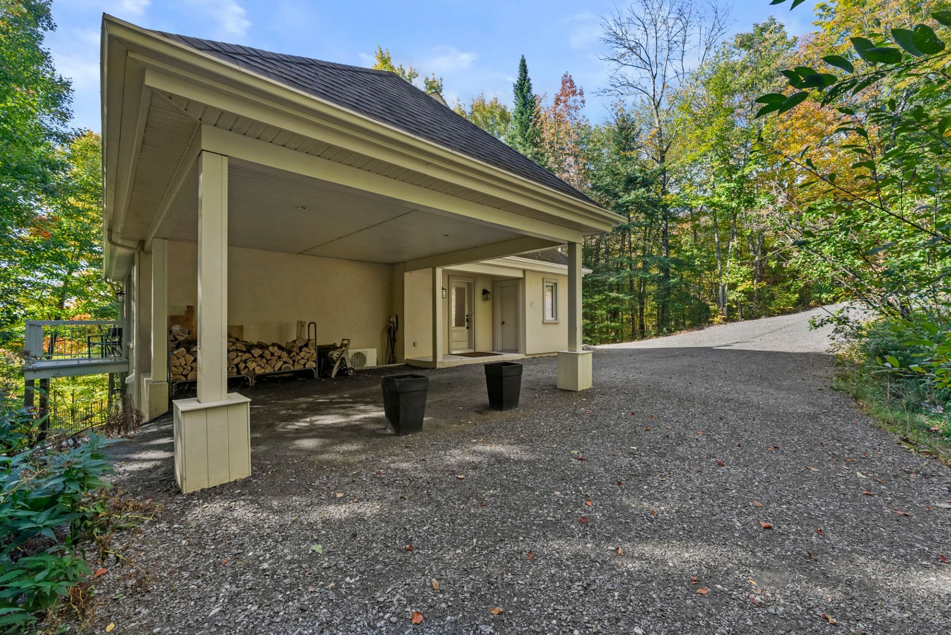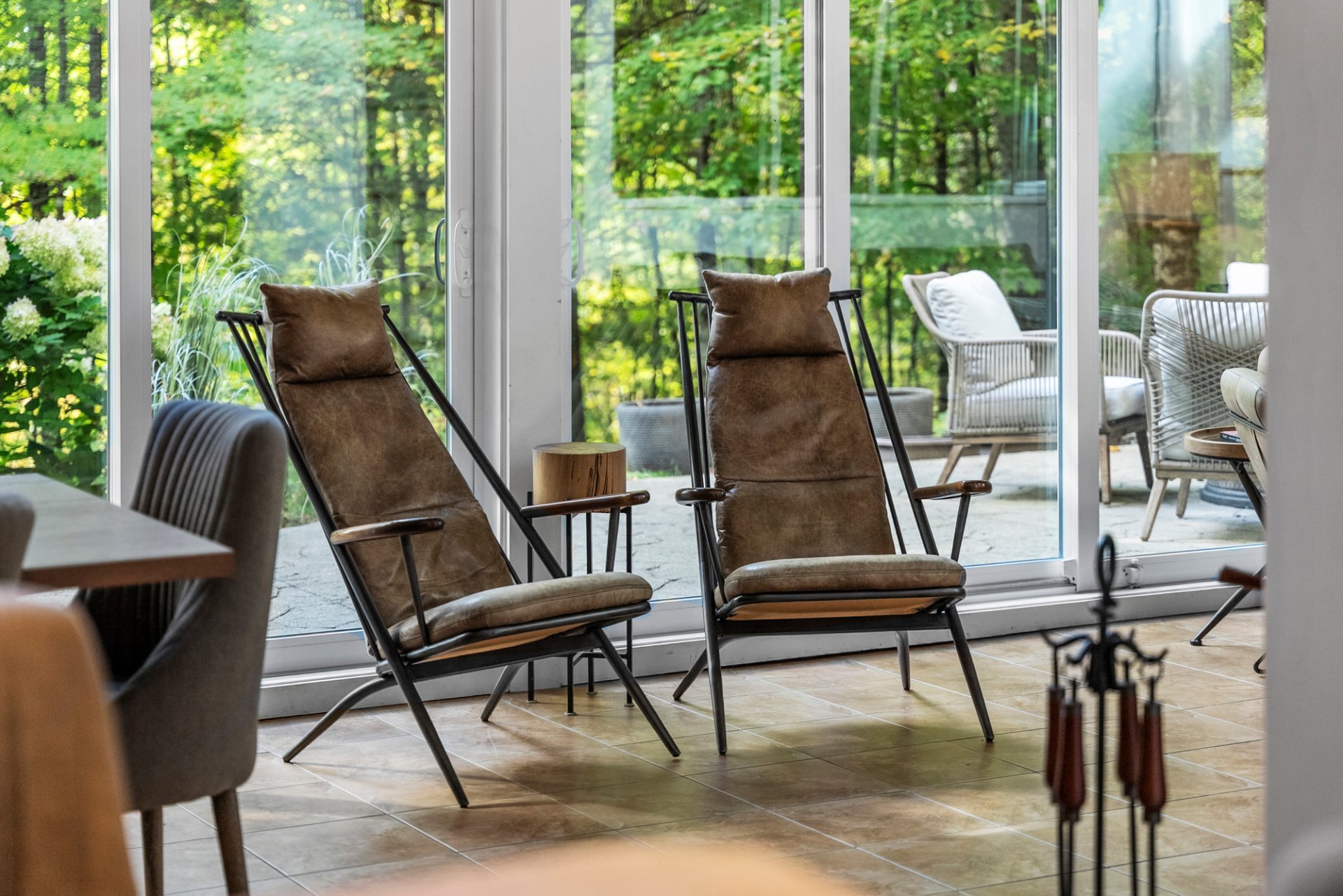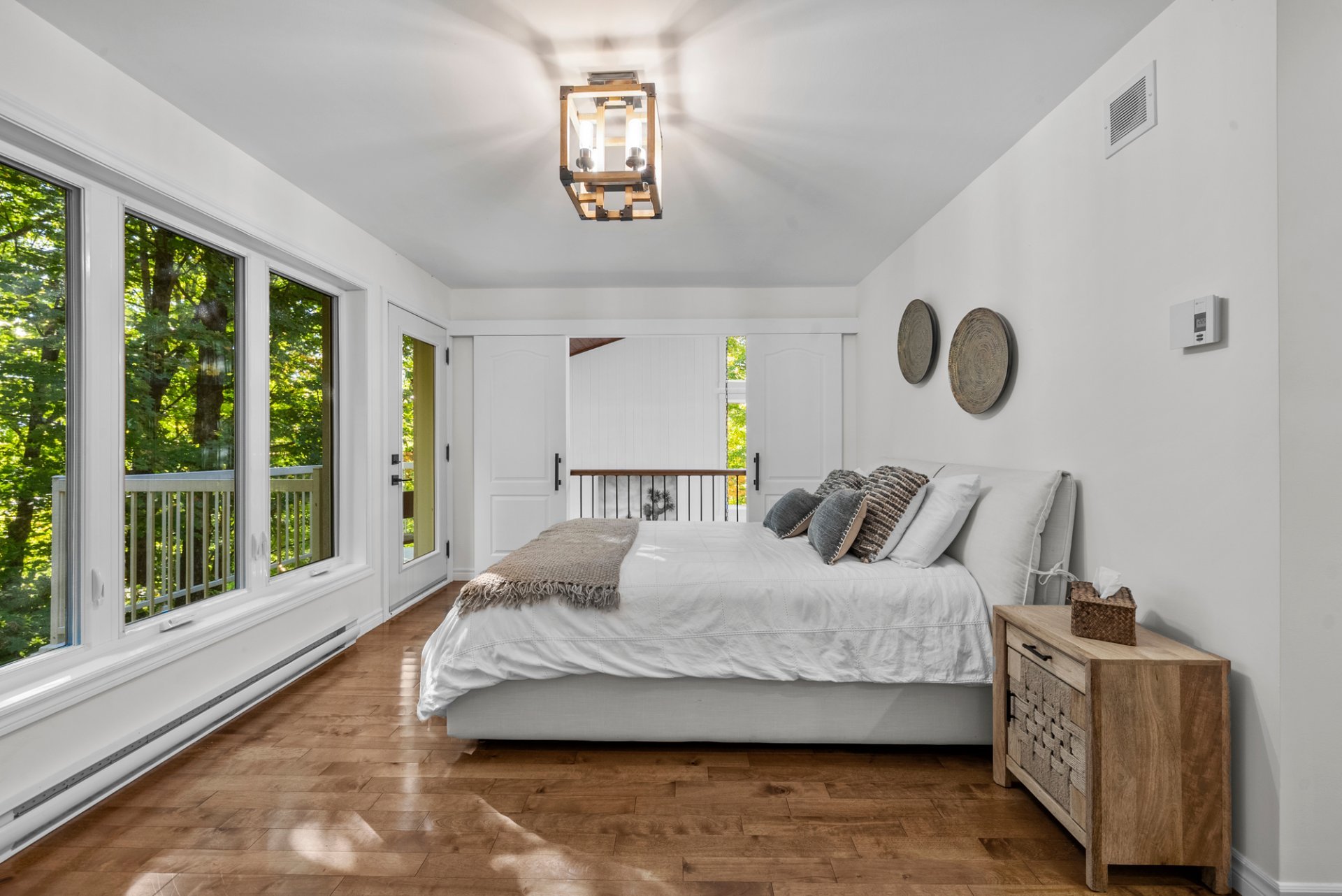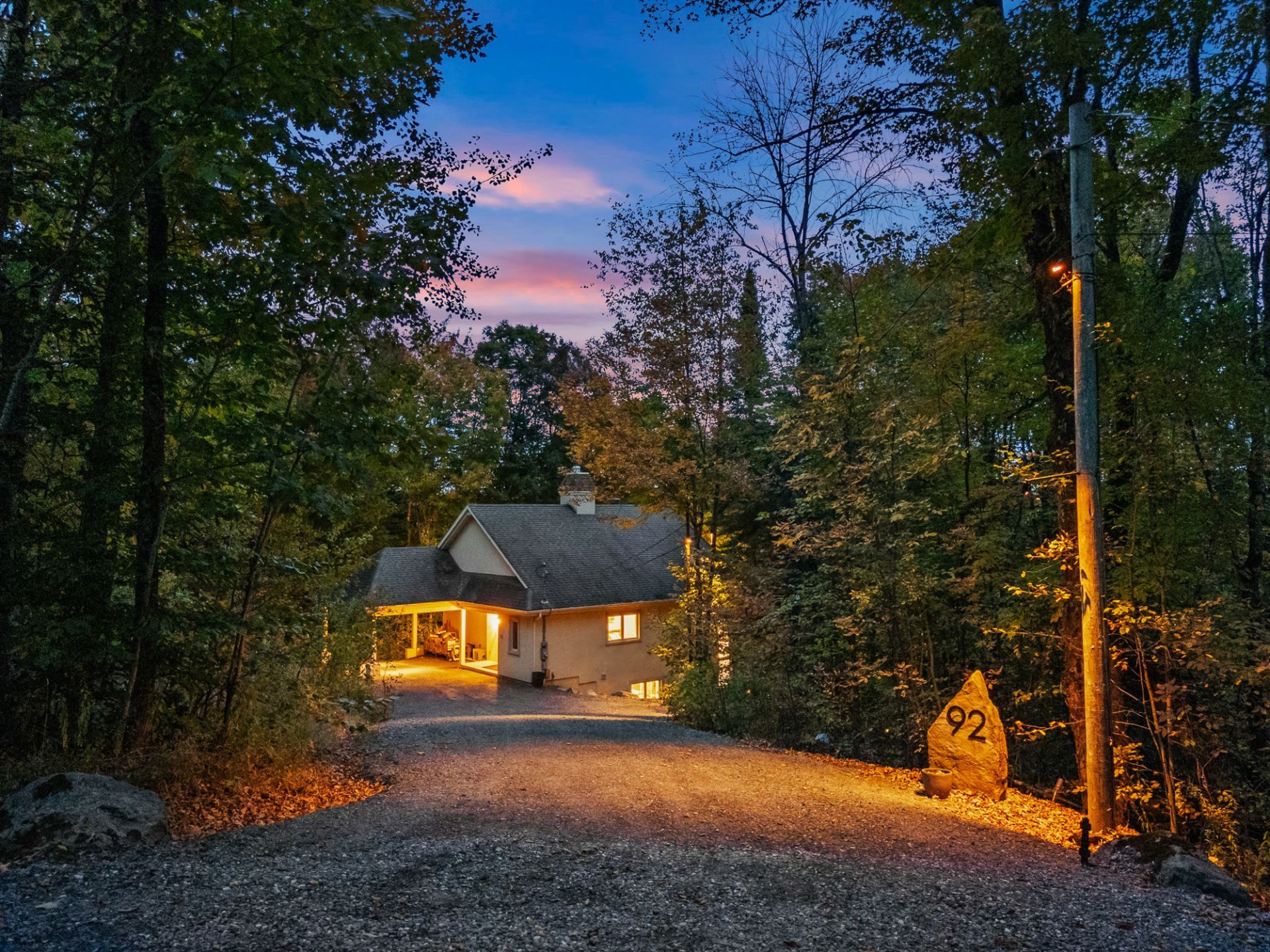 À l'extérieur, terrasses et balcons vous permettent de profiter pleinement du cadre naturel : barbecue sur le patio couvert, café matinal sur le balcon, ou soirée autour du feu avec VUE SUR LE LAC. Un sentier privé mène à un espace aménagé avec chaises Adirondack et foyer, idéal pour les rassemblements en famille ou entre amis.