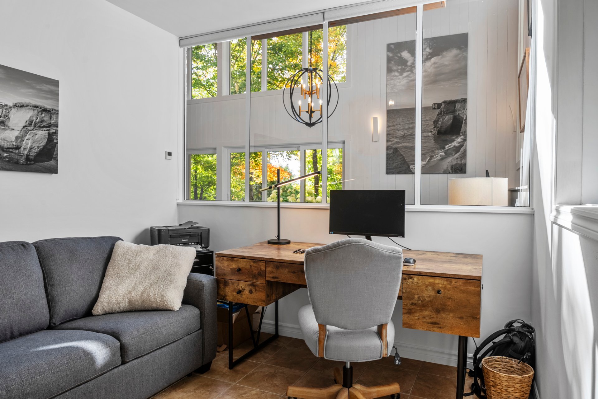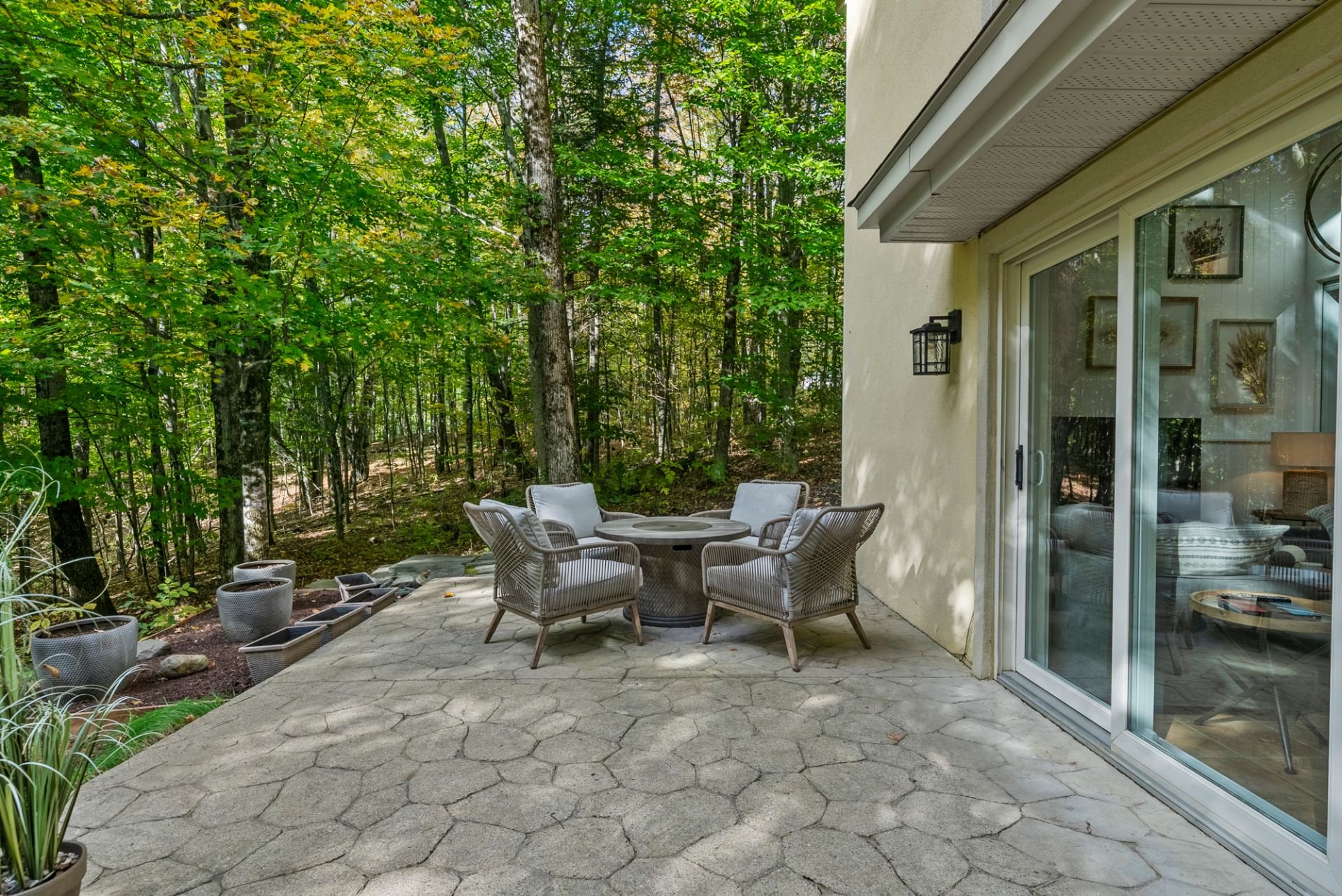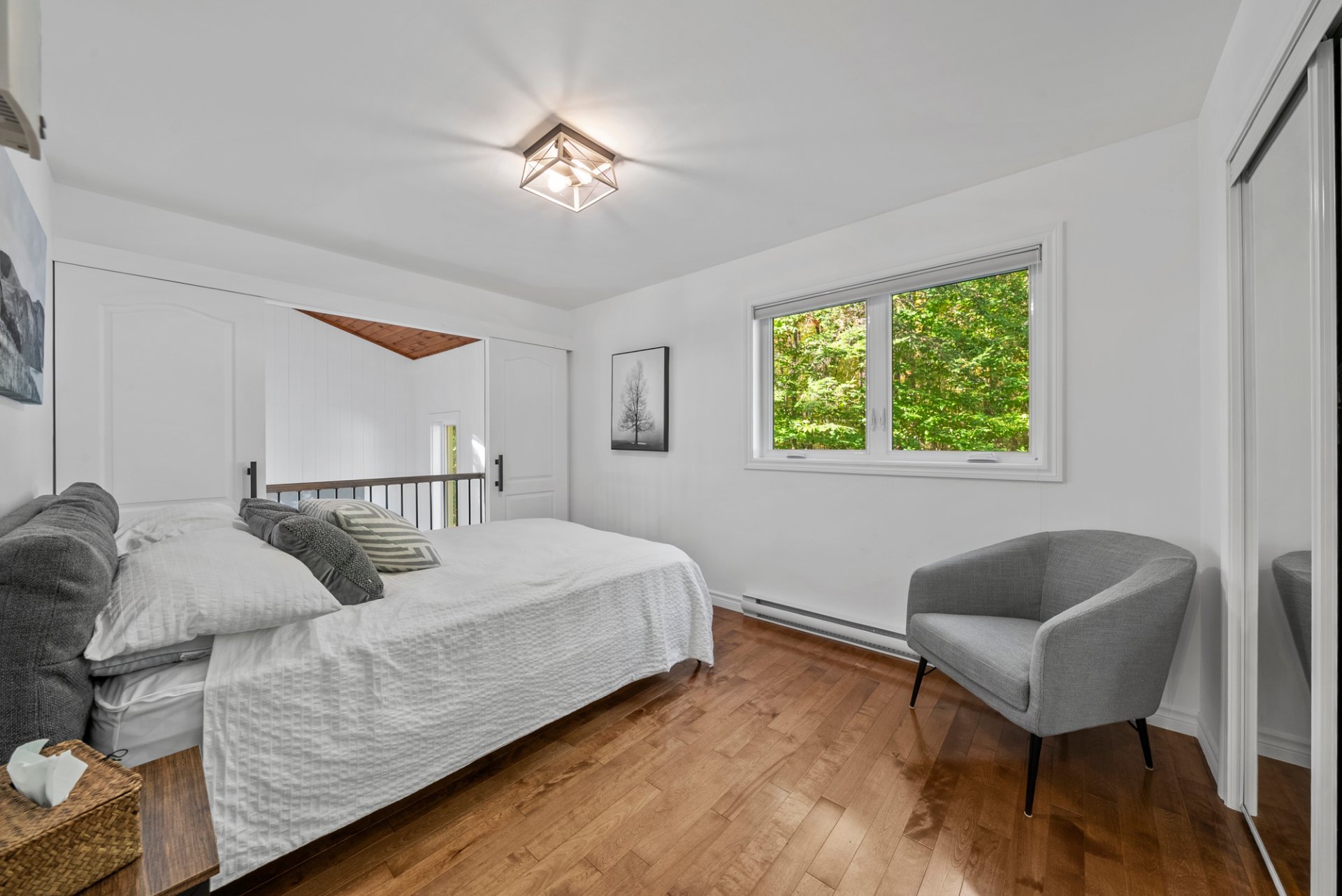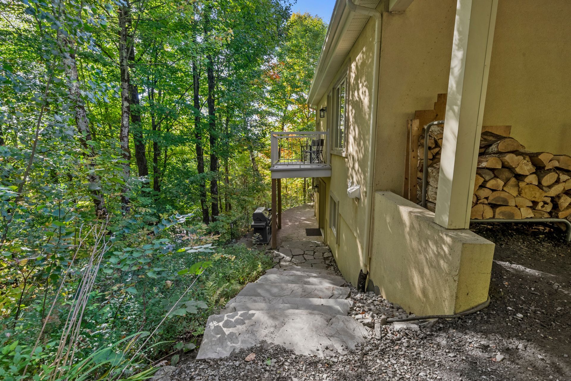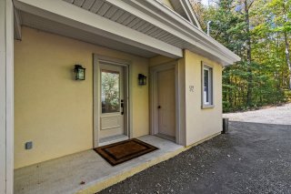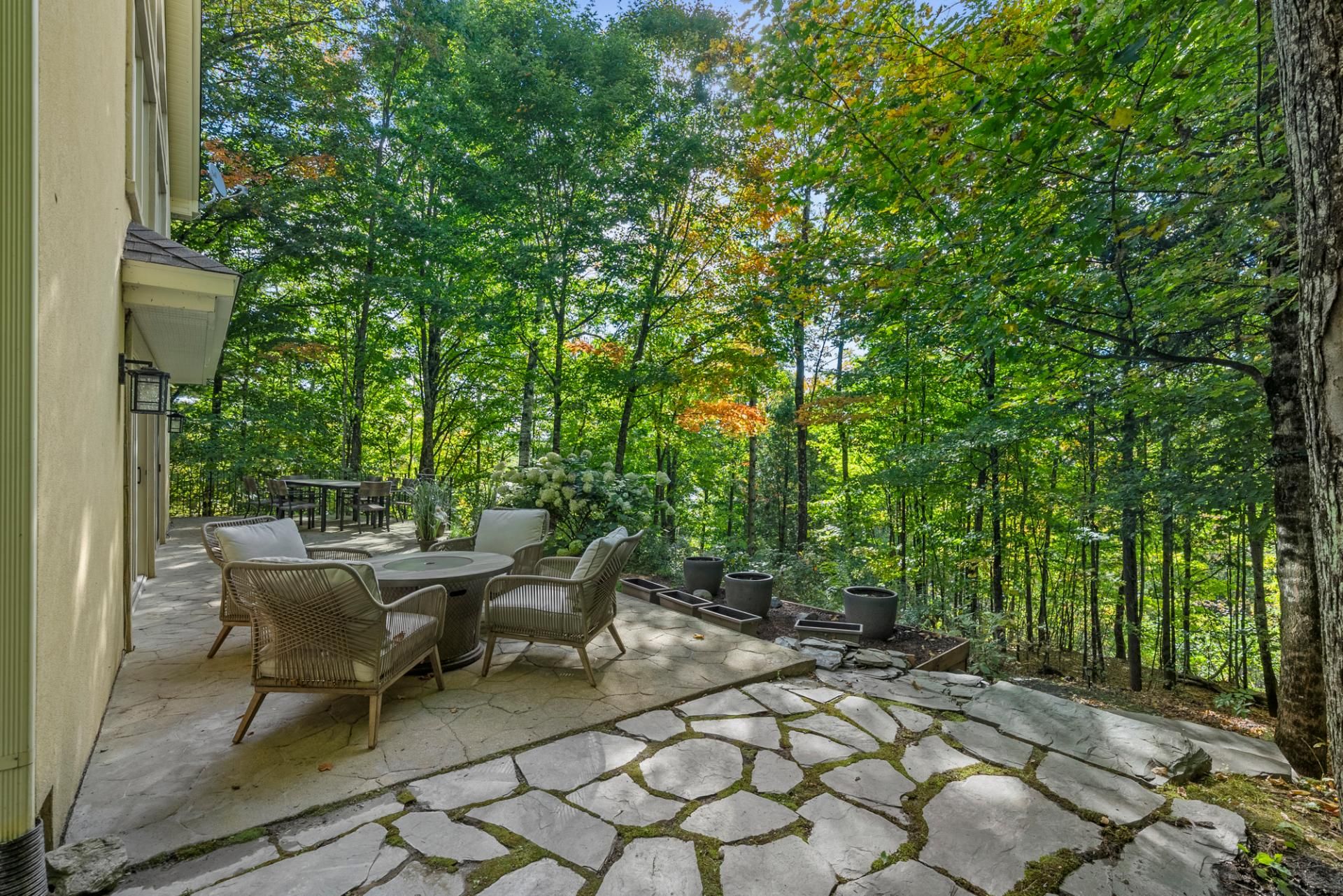 À l'extérieur, terrasses et balcons vous permettent de profiter pleinement du cadre naturel : barbecue sur le patio couvert, café matinal sur le balcon, ou soirée autour du feu avec VUE SUR LE LAC. Un sentier privé mène à un espace aménagé avec chaises Adirondack et foyer, idéal pour les rassemblements en famille ou entre amis.