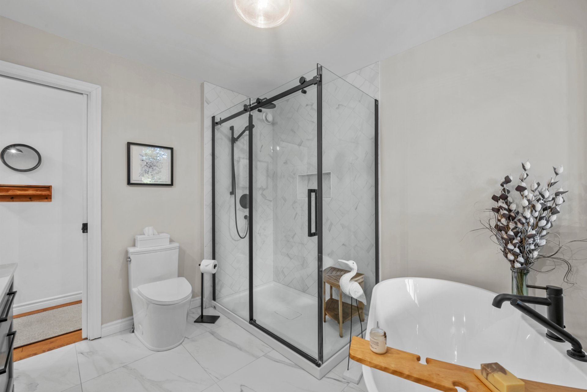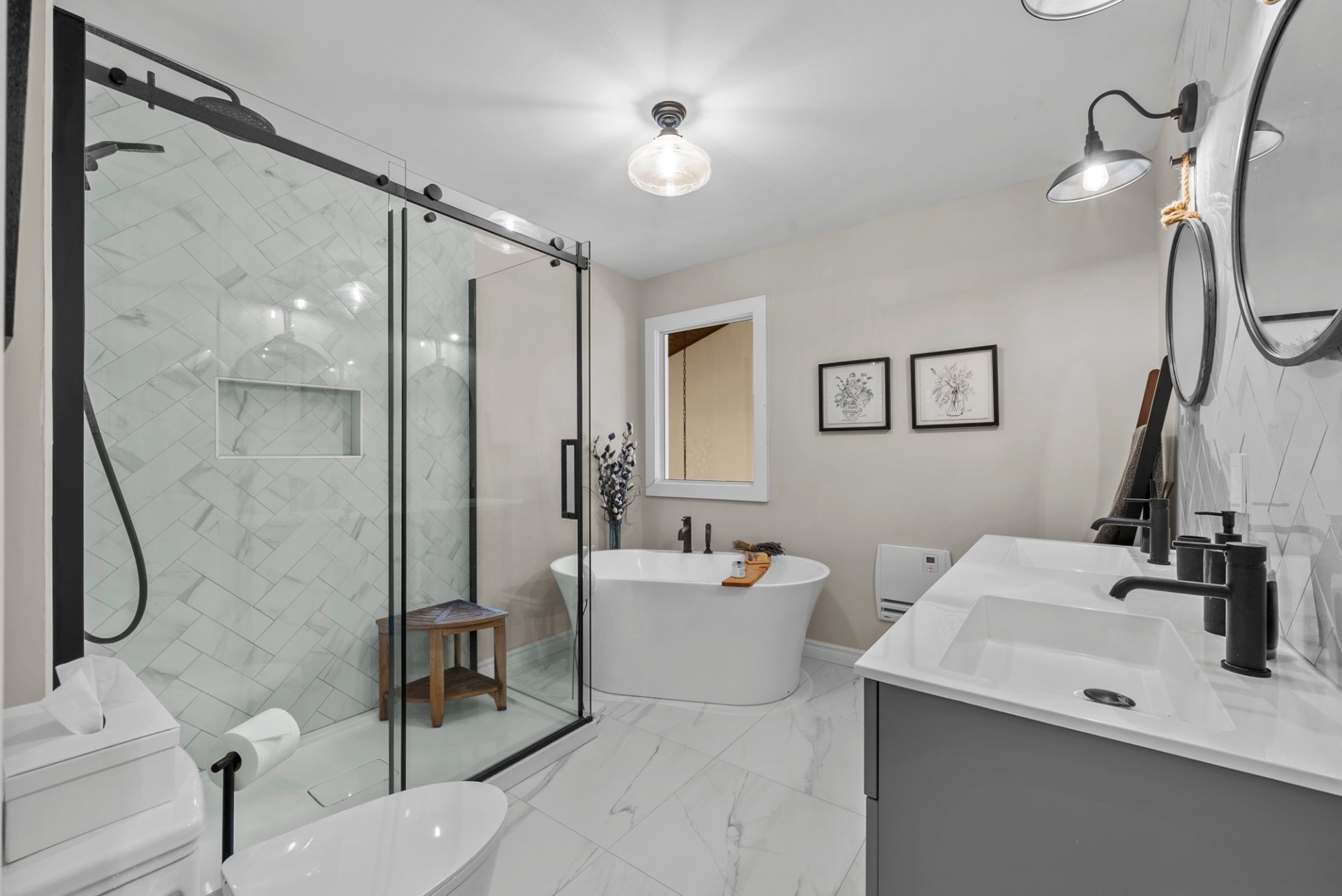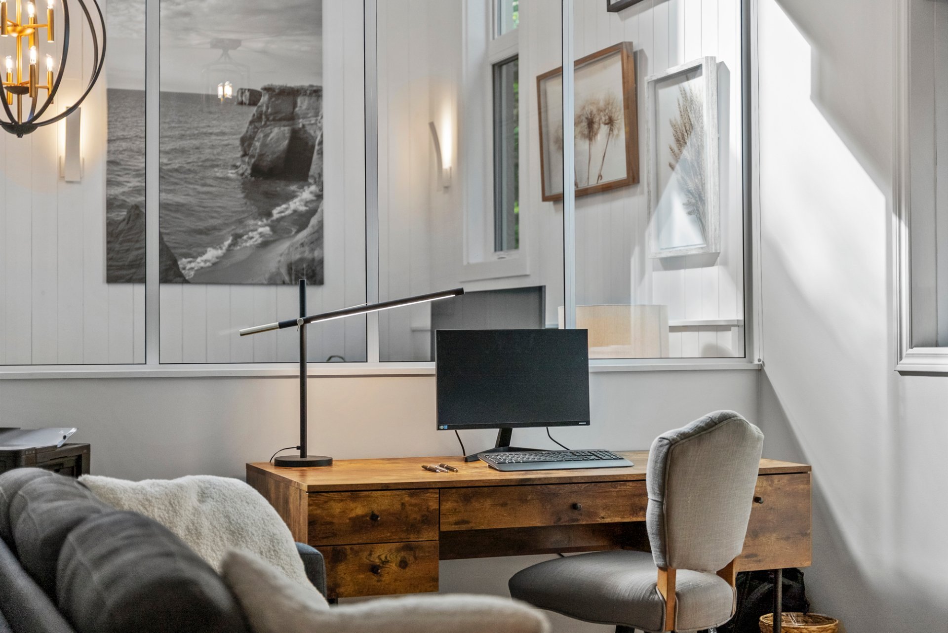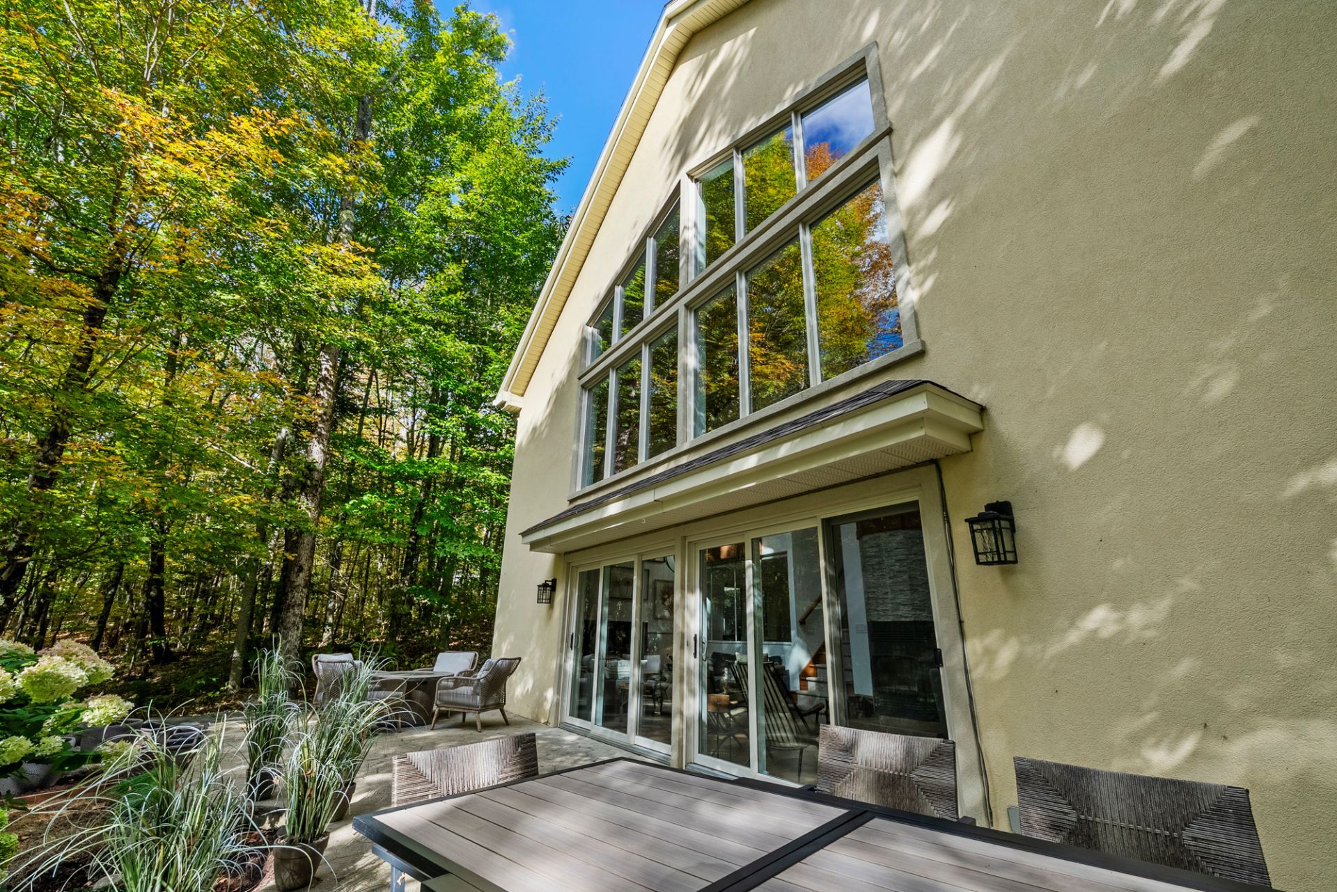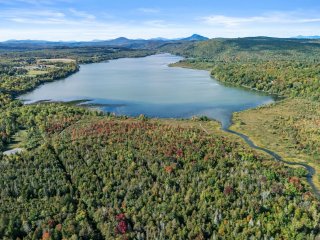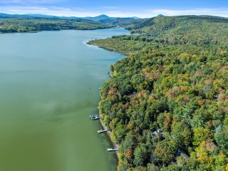 À l'extérieur, terrasses et balcons vous permettent de profiter pleinement du cadre naturel : barbecue sur le patio couvert, café matinal sur le balcon, ou soirée autour du feu avec VUE SUR LE LAC. Un sentier privé mène à un espace aménagé avec chaises Adirondack et foyer, idéal pour les rassemblements en famille ou entre amis.