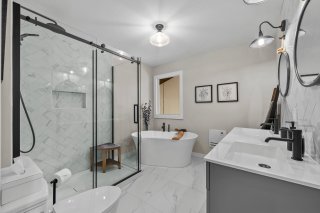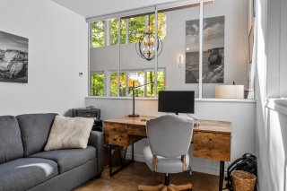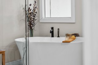 La maison comprend une salle de bain complète au design raffiné -- baignoire autoportante, douche vitrée, double vasque -- ainsi qu'une salle d'eau pratique pour les invités. Les chambres à l'étage sont de véritables cocons. Chacune est dotée de portes coulissantes qui s'ouvrent sur une vue plongeante vers l'étage inférieur et sur l'extérieur grâce aux immenses fenêtres panoramiques. L'effet est saisissant : lumière naturelle abondante, vue sur les cimes des arbres, et une sensation d'espace et de fluidité. La chambre principale, dispose de son balcon privé, orienté vers la forêt, où l'on peut savourer le chant des oiseaux au réveil ou un moment de lecture au coucher du soleil. Un véritable sanctuaire pour se ressourcer.