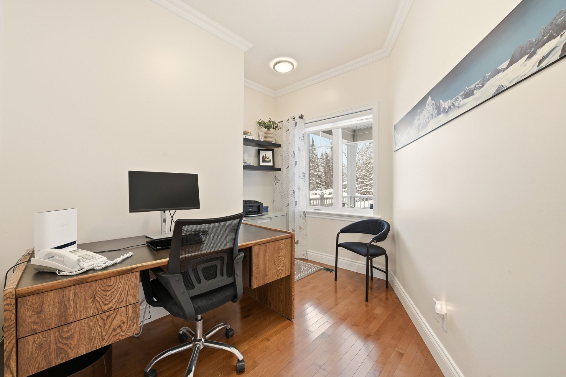 La chambre à coucher principale propose une atmosphère paisible et bénéficie d'une salle de bain attenante. Un bureau fermé de belles dimensions, parfait pour le télétravail, ainsi qu'une autre chambre à coucher à l'étage, complètent harmonieusement ce niveau.