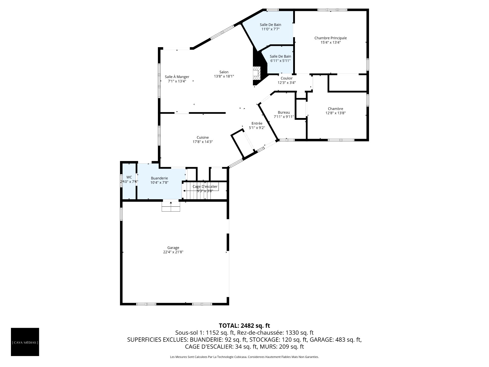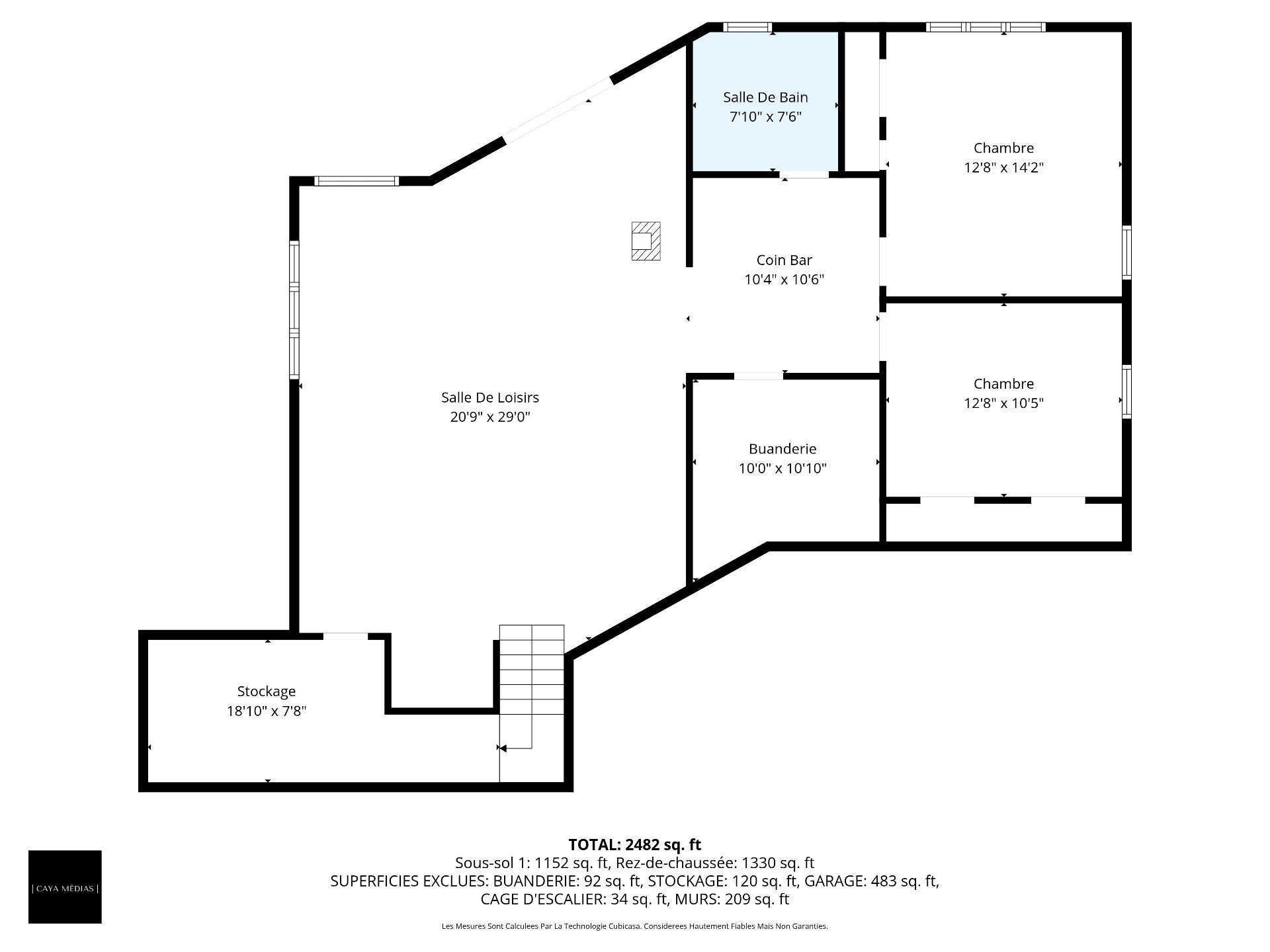 | Salle de bains | 7.10 x 7.6 P | Sous-sol | Céramique |